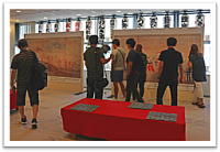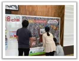 皆さんのご協力のおかげで9975枚の写真が集まり、予定通り8月12日から館内で展示を始めました。お客さまに大変好評をいただいております。写真を投稿した方々はパネルの前でご自分の写真を熱心に探し、ご家族やご友人と楽しそうにお話しされています。企画をご存じないお客さまも、「すごい」と興味深く見てくださっています。会館関係者も写真探しを楽しんでいます。