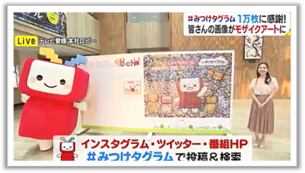 テレビ愛媛(フジテレビ系列)の夕方の「EBCLiveNews」内で放送している視聴者からの写真を紹介するコーナー「みつけタグラム」インスタグラムに寄せられた写真の投稿数が1万件を突破したことを記念して、モザイクアートの制作が決まりました。