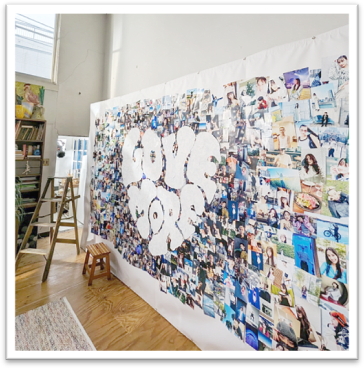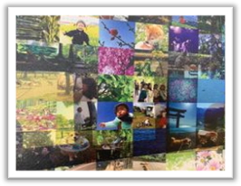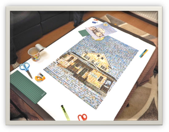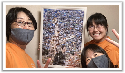 『この度、初めてペーストモザイクアートの作成に取り組みました。約1000枚の写真を集めてモザイクアートを4000ピースから作る様にしましたが、最初は全くイメージが湧かず、少し不安もありながら写真を集めていました。1000枚の写真集めは、なかなか苦労もありましたが、皆さまのおかげで何とか集める事が出来ました。