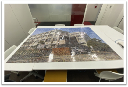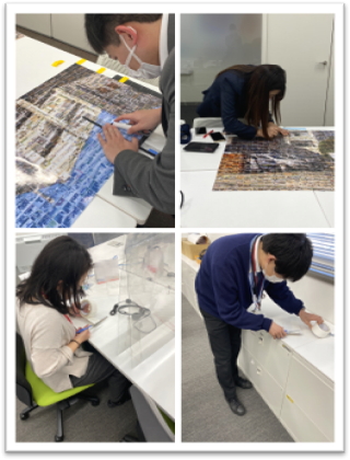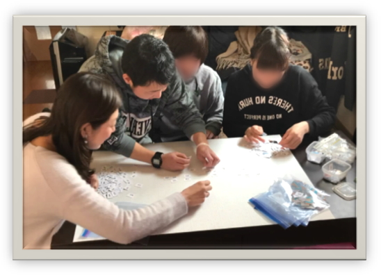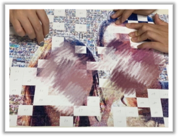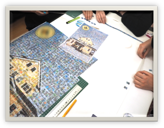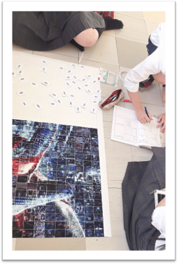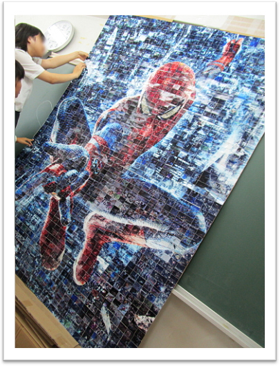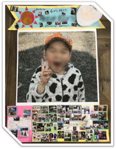 ・写真を1から番号順に並べ直したり、分担して貼る写真を分けたりしました。とても大変でしたが、完成したモザイクアートを見て、作れるんだなぁと感動しました。