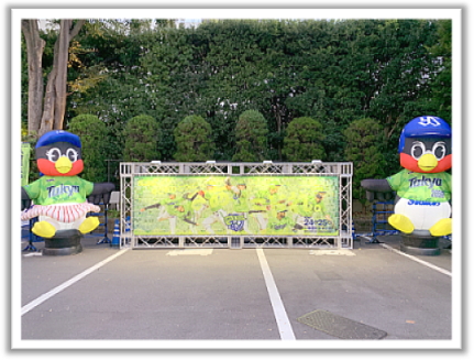 全幅5メートル以上の巨大モニュメントは、全景ではイベントのテーマを伝え、近づいて見えるモザイクアートのパーツで選手やファンが一体となっている事を表現したモニュメントは、当日撮影スポットとして盛況となりました。