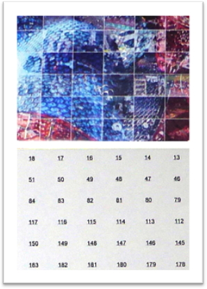 ◇東京都在住 S様 ご利用サービス:ペーストモザイクアート制作サービス(A1サイズ縦841mm×横594mm、構成枚数約1,000枚、光沢塩ビ糊つきを1枚印刷、ナンバリングまで。切り離し、台紙作成はお客様ご担当)