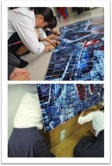 ・写真が届いてから1週間では、文化祭までに完成するのは正直無理だと思っていた。そのモザイクアートがきれいに完成できたので嬉しかった。