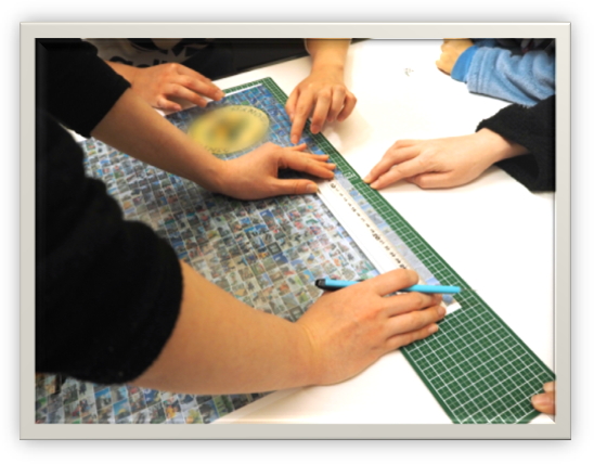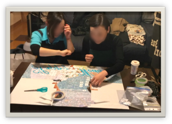 ・みんなで写真を切って、ひたすら貼っていきました。すごく大変な作業だったけど、無事に完成して、クラスのみんなはもちろん、見に来てくれた人にも喜んでもらえて頑張ってやって良かったと思いました。