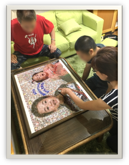 モザイクアート自体が初めての経験で、よくわからないことばかりでしたが、製作過程から写真の送り方まで親切に相談にも乗っていただき非常に助かりました。