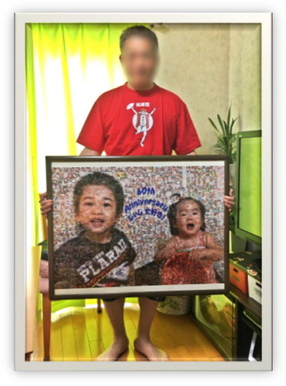 はじめにモザイクアートを知ったのは友人の結婚式で友達がプレゼントしていたのをみてからです。『凄いなー。どうなっているのだろう』と思っていました。そして今回息子の誕生日があり撮り溜めてあった写真整理もしたかったのと、写真を全部使いたかったのがありモザイクアートをやってみよう!と思いました。友人たちは自分たちでソフトを買って作っていたのですが、あたしはパソコンが苦手な上、誕生日までの時間も限られていたのでどうしようかと悩んでいました。そこで見つけたのがこのサイトピモザの株式会社ラヴィコさんでした。担当の方に相談するととても親身になって聞いてくれ相談に乗ってくれました。自分でやるより『縦の枚数の方が多いので縦に合わせた方がいいです』など調べてくれアドバイスもしていただきました。サイズも微妙なサイズ感の要望だったのですが快く対応していただきました。1人でじゃ4000枚もあり挫けそうでしたがラヴィコさんのおかげで立派なものを作ることができました。時間もない中、そして私のこだわりと注文も多い中で作っていただいたこと感謝しております。おかげで息子は大喜び!♡作ってよかったと思いました。次の子の時もまたお願いしたいと思っていますので、次は早めに写真の整理をしておこうと思います。本当にありがとうございました。』