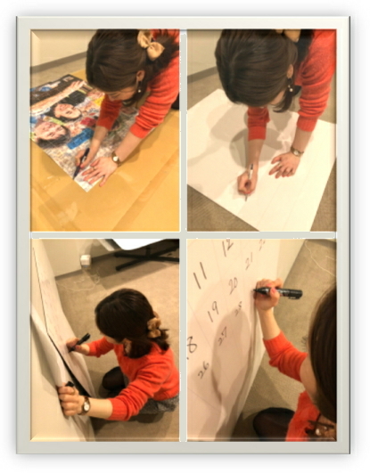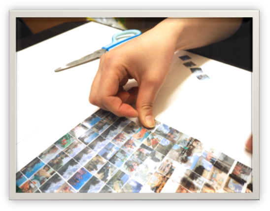 貼り付け用の写真のカットならびにナンバリングから自分達で行いました。約1000枚の写真を間違わずに切ってナンバリングする作業は思ったより大変でしたが、写真を見ながら思い出話をしながら楽しく行うことができました。ほぼ丸一日かかったように思います。