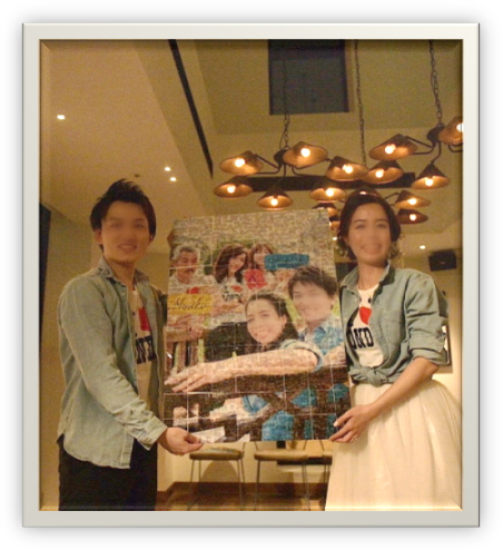 みんなで歌を歌いながら、写真のピースを曲中に貼っていき最後に完成する、という流れでしたが、会場が一丸となり、新郎新婦も大喜びでした!