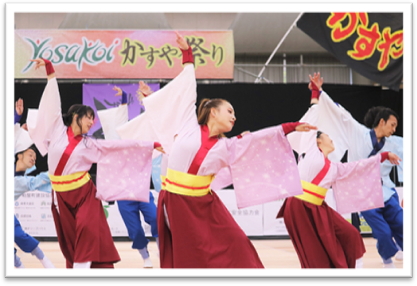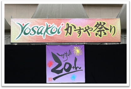 今回、10月8日、9日に開催した第20回YOSAKOIかすや祭りのメイン看板として、貴社のモザイクアートを使用させていただきました。